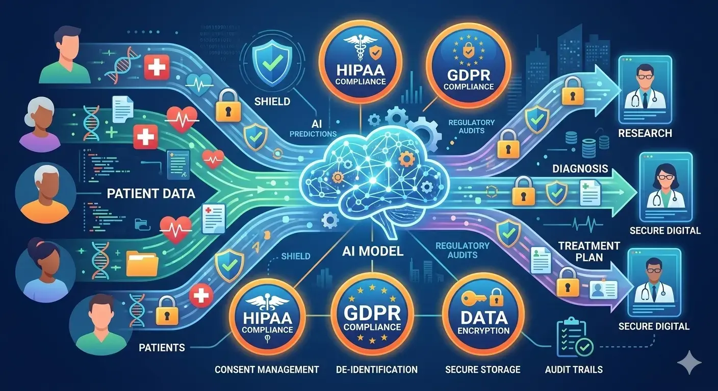 - Legal understanding: Map out all applicable laws (HIPAA, FDA, GDPR, state privacy laws) and build your system to meet them.