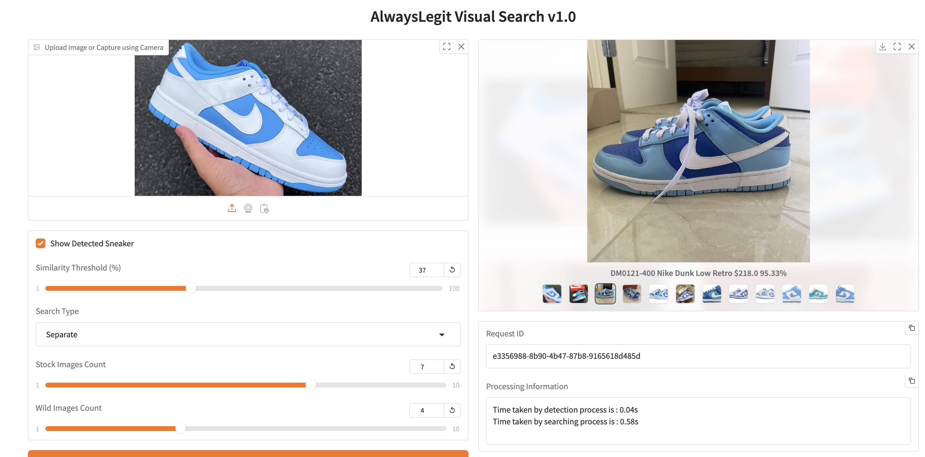 AlwaysLegit needed a way for their team at expos to instantly identify shoes from photos and match them against a massive 150K+ SKU database, often in challenging real-world lighting and backgrounds.